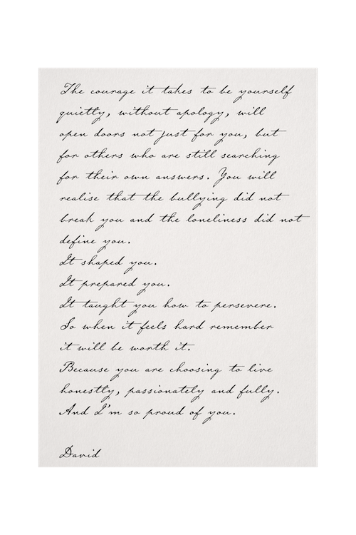 The courage it takes to be yourself quietly, without apology, will open doors not just for you, but for others who are still searching for their own answers. You will realise that the bullying did not break you and the loneliness did not define you.